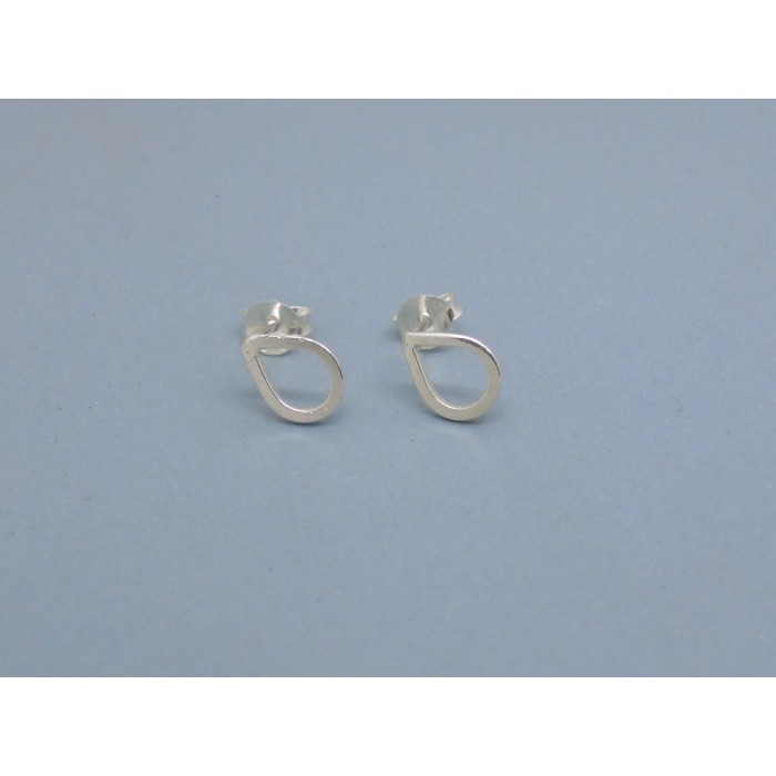 A pair of open tear drop studs in 925 sterling silver. The open designed tear drop studs will compliment any piece of jewellery. The studs come with the sterling silver butterfly backs to keep them securely held in place.