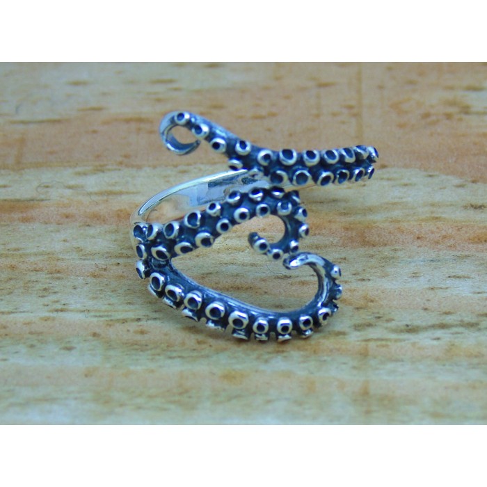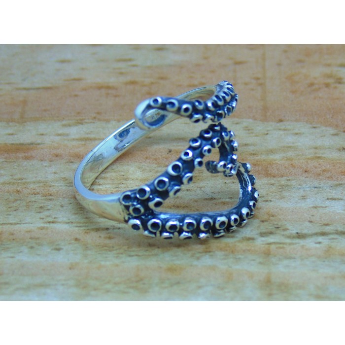 A beautifully crafted 925 sterling silver octopus tentacle heart ring. The three octopus tentacles make the shape of a heart.