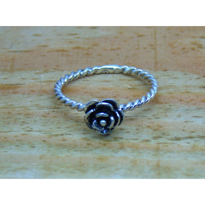 A delightful sterling silver flower stacking ring, the stacking ring has a twisted band with the flower sitting on top.
