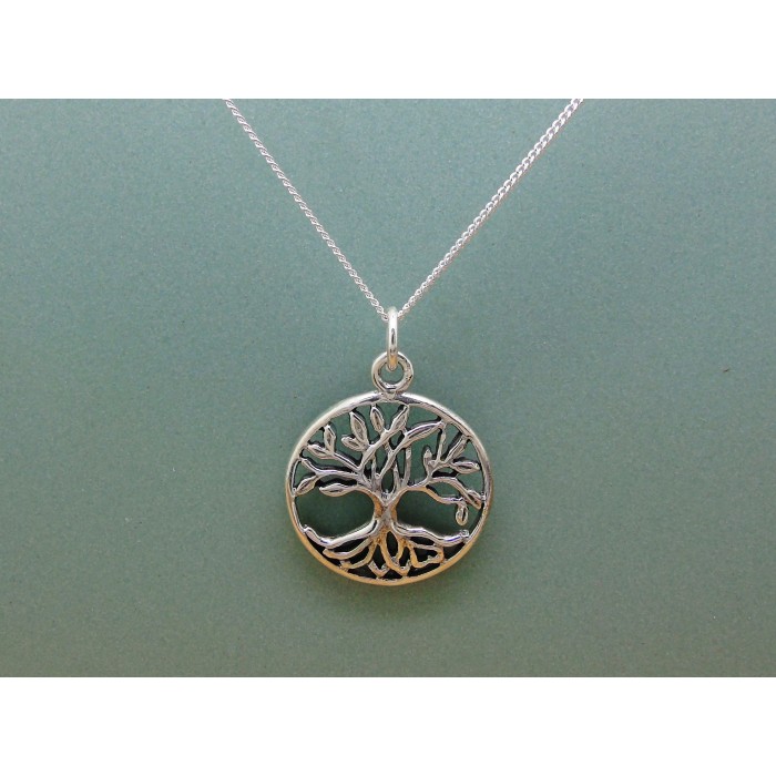 A sterling silver tree of life circular pendant, the openness of the pendant helps to accentuate the tree of life outline.