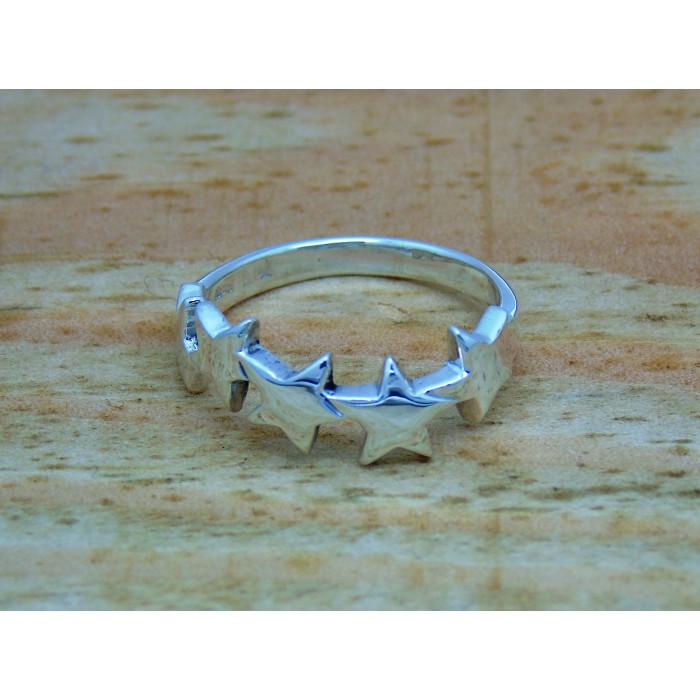 A highly polished sterling silver 5 star ring, the 5 stars form a slight curve. A delightful ring for everyday use or as a centre piece.
